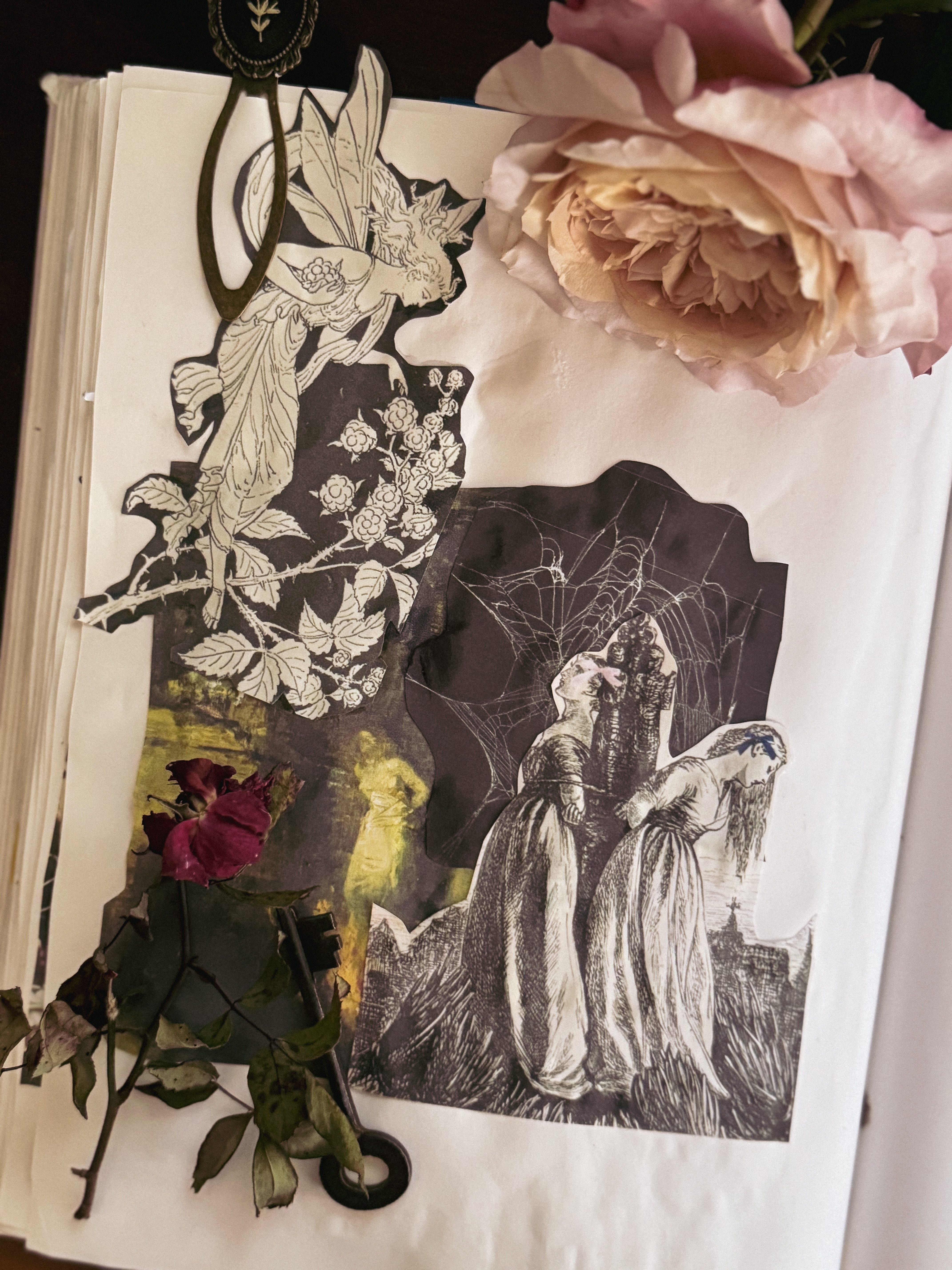 Lately, I’ve been using collage and divinatory tools to process themes and concepts alongside my artwork. In the Literary Coven Book Club, Kristin and I are still peeling back the layers of Slewfoot by Brom, exploring themes of monstrosity and survival. Learn more (and join the book club!) here.