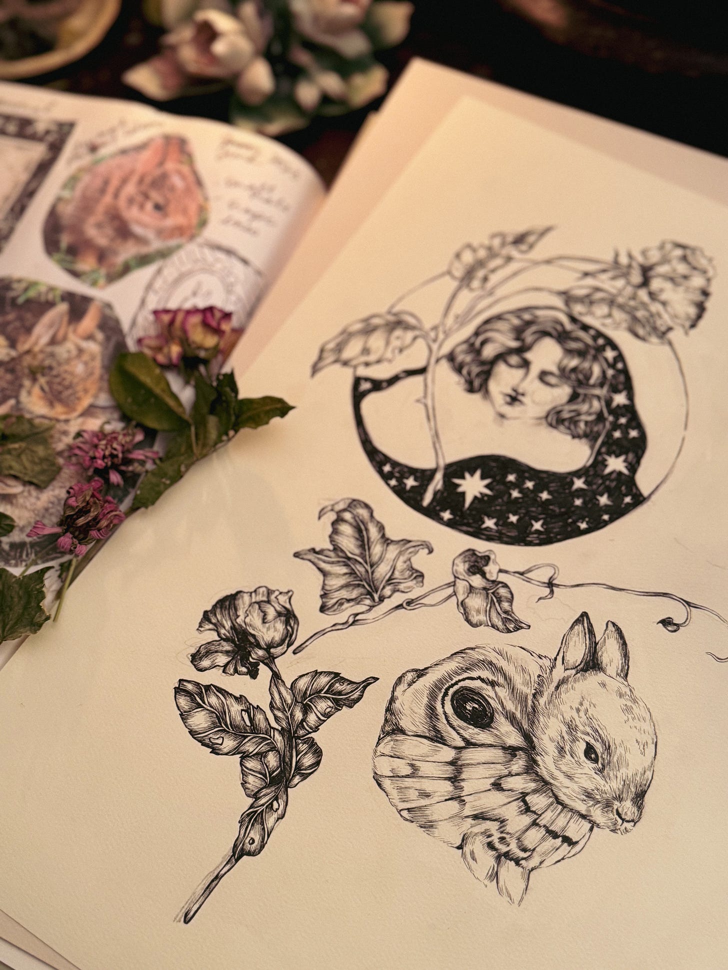 A few of my recent drawings exploring texture and composition. I highly recommend experimenting with different paper - for example, I’ve started drawing on toned pastel paper. I love the muted colors, the texture, and it holds the ink incredibly well.
